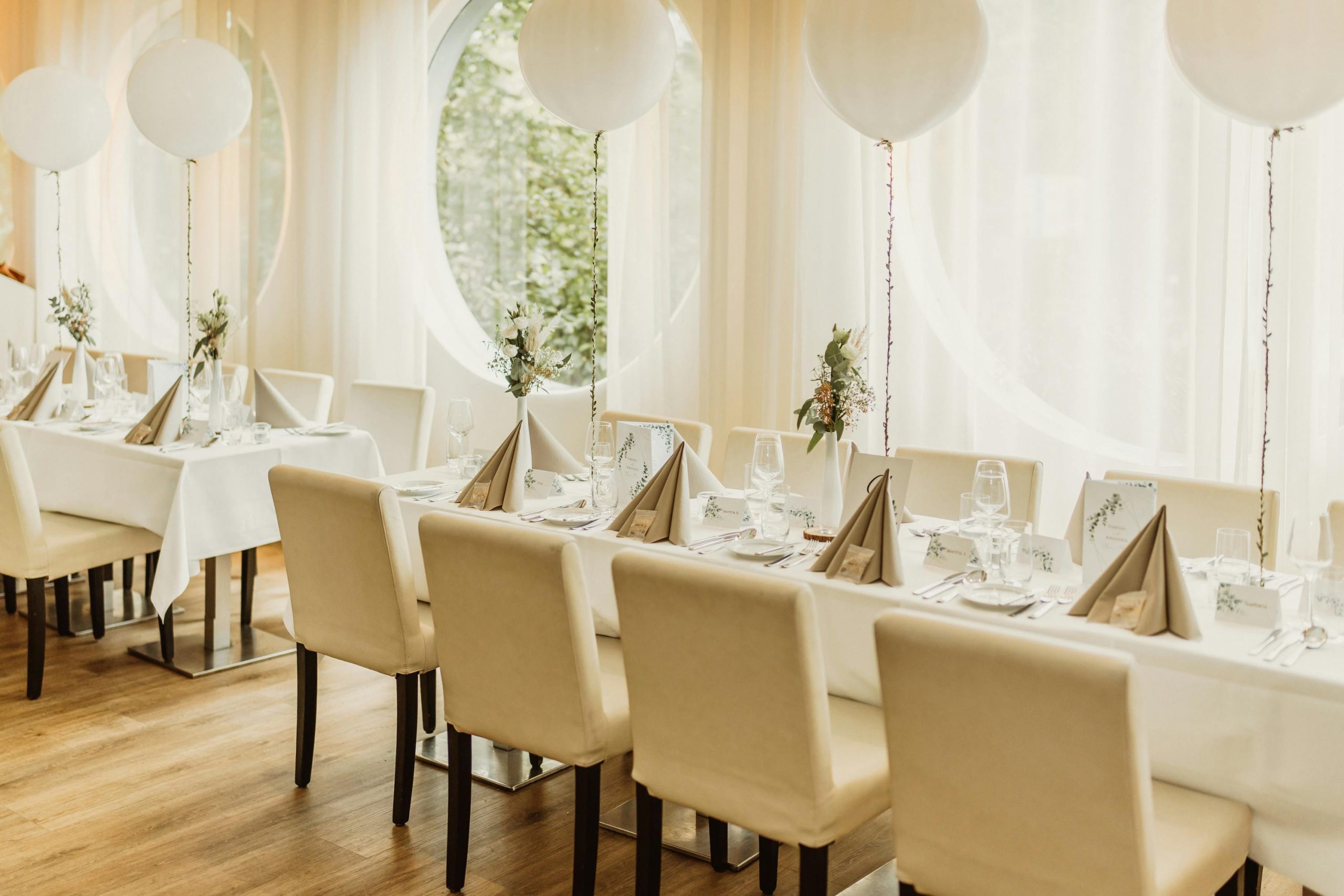 Elegancka sala bankietowa przygotowana na przyjęcie urodzinowe