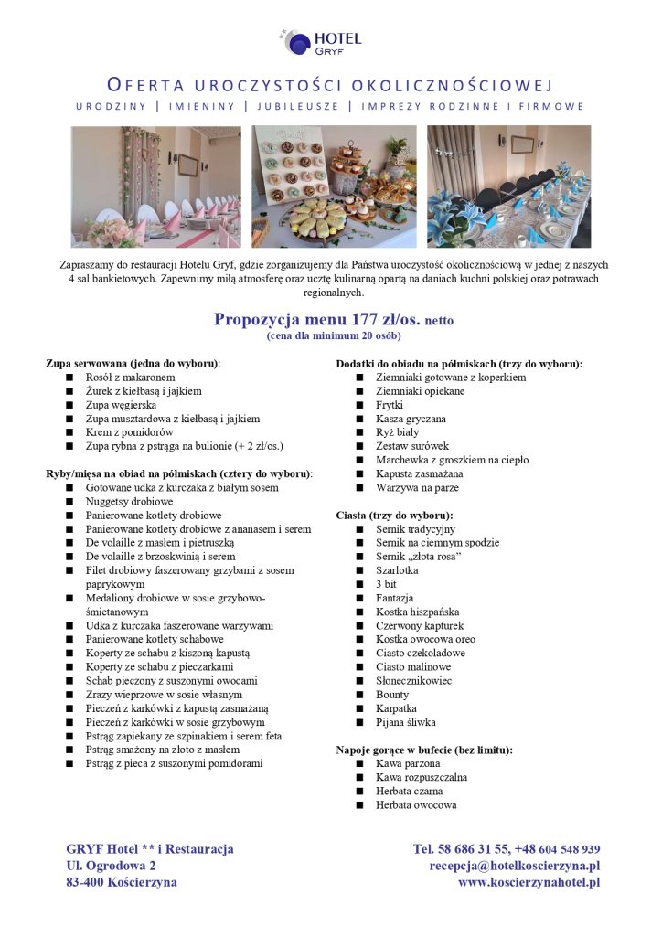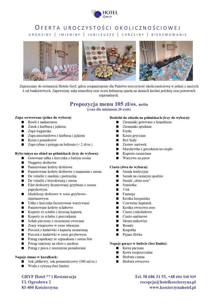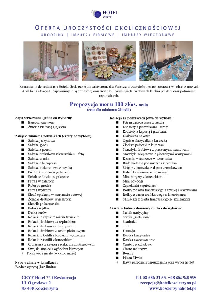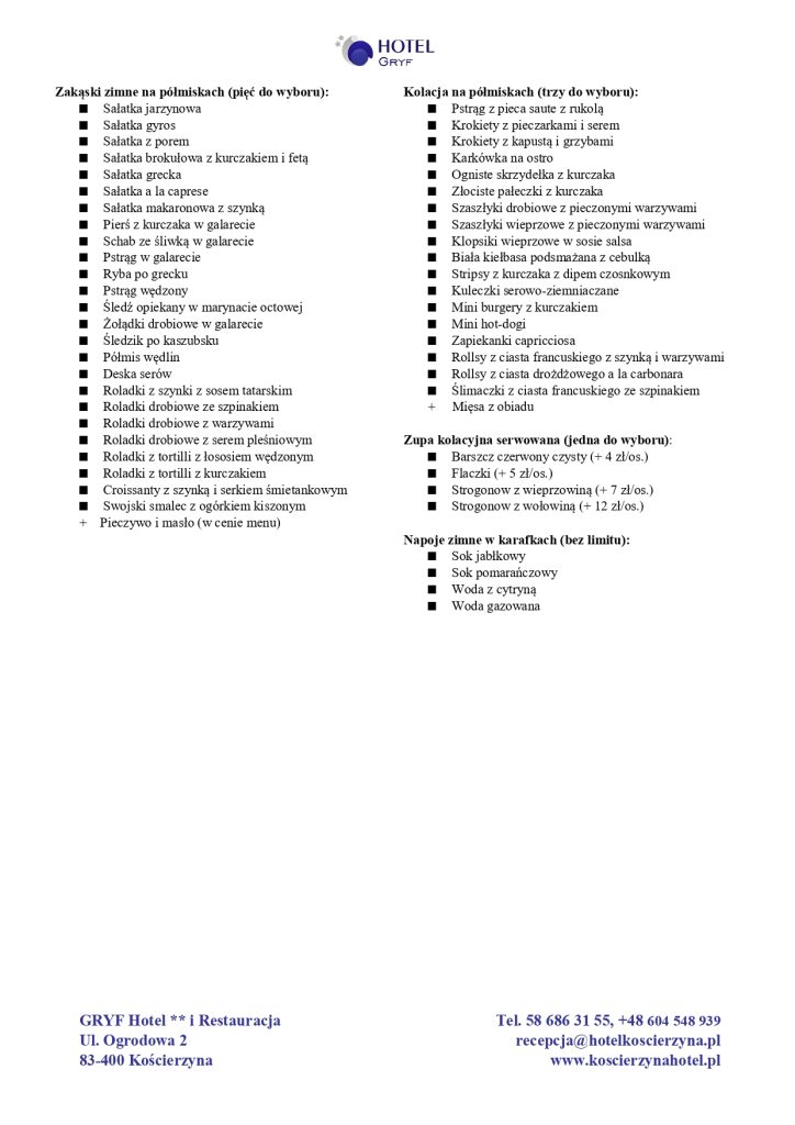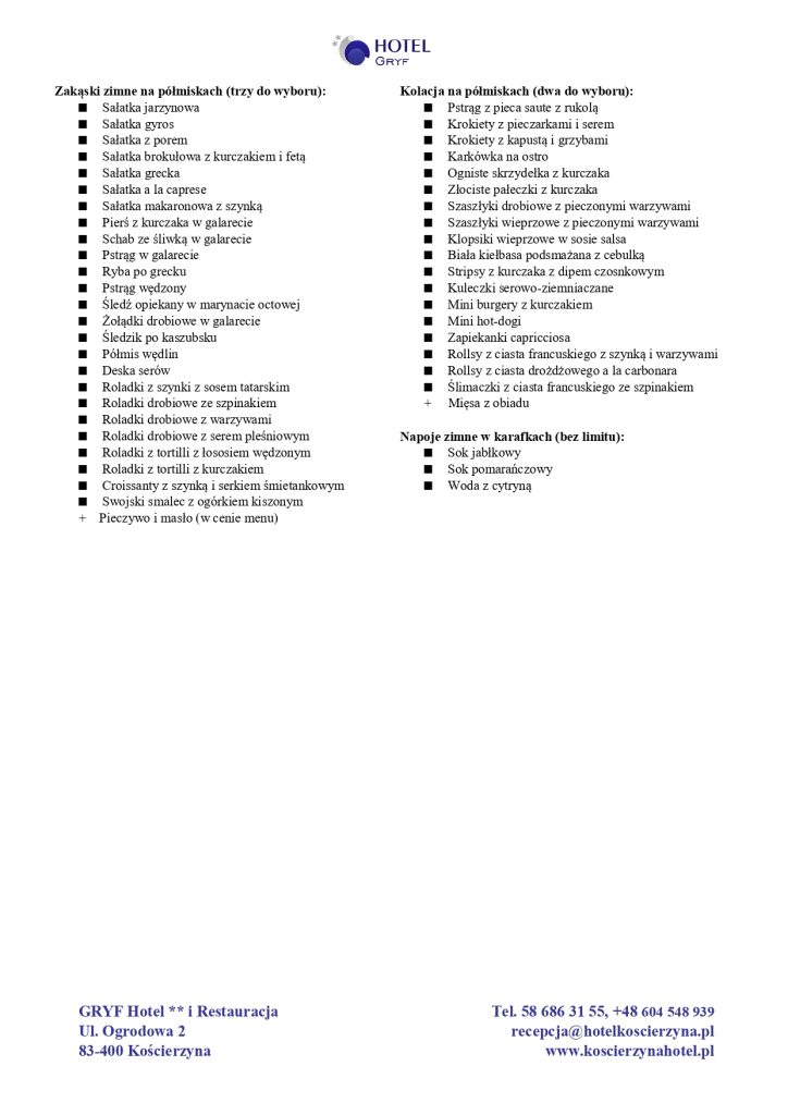 Oferta nr 2 – Obiad + deser + kolacja (wersja standard)